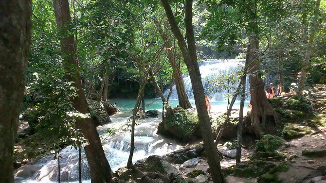 หลังจากจอดรถแล้ว เราก็เดินขึ้นมาบนน้ำตกครับ โดยน้ำตกที่นี่จะมี7ชั้น แต่พวกเราเดินขึ้นมาถึงชั้น3พอครับ เหนื่อย 55 ร้อนด้วย วันนี้เป็นวันจันทร์ครับ นักท่องเที่ยวไทยไม่ค่อยมีเท่าไหร่ แต่นักท่องเที่ยวชาวต่างชาติเยอะมากๆ เรียกได้ว่าลานจอดรถ มีแต่รถนักท่องเที่ยวต่างชาติทั้งนั้น