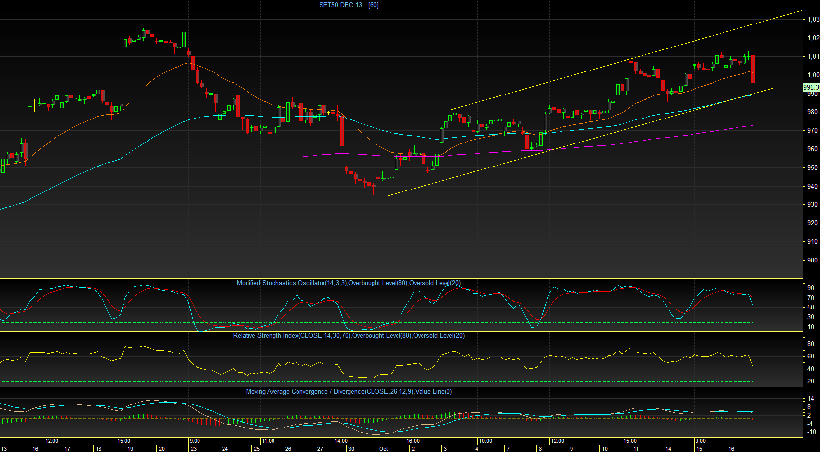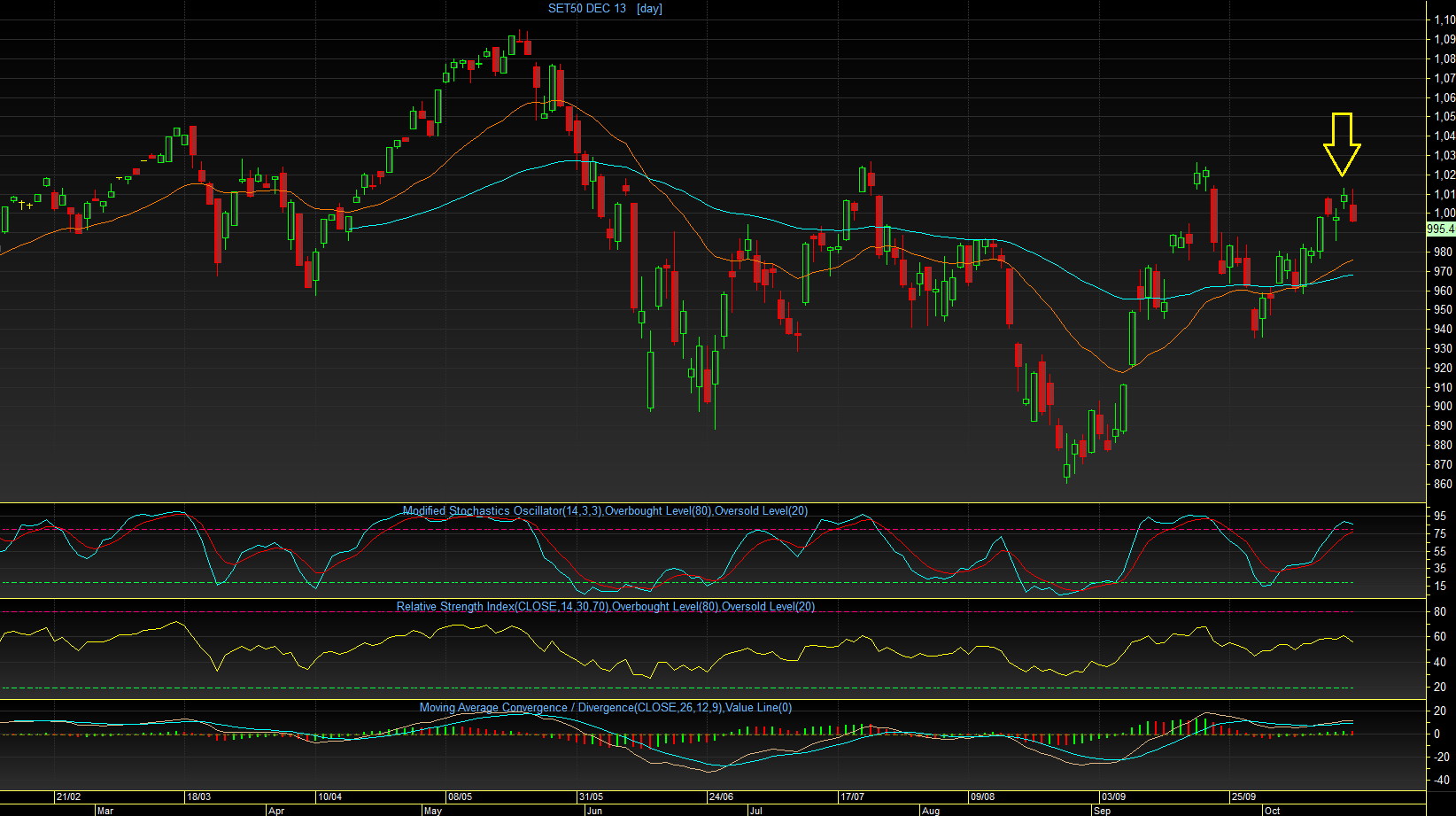 ออกมาอย่างหนัก จนทำให้ปิดไปที่ระดับ 995.30 เกือบ low ของวัน แต่ก็ไม่ทำให้ ไหล่ขวาเสียรูป