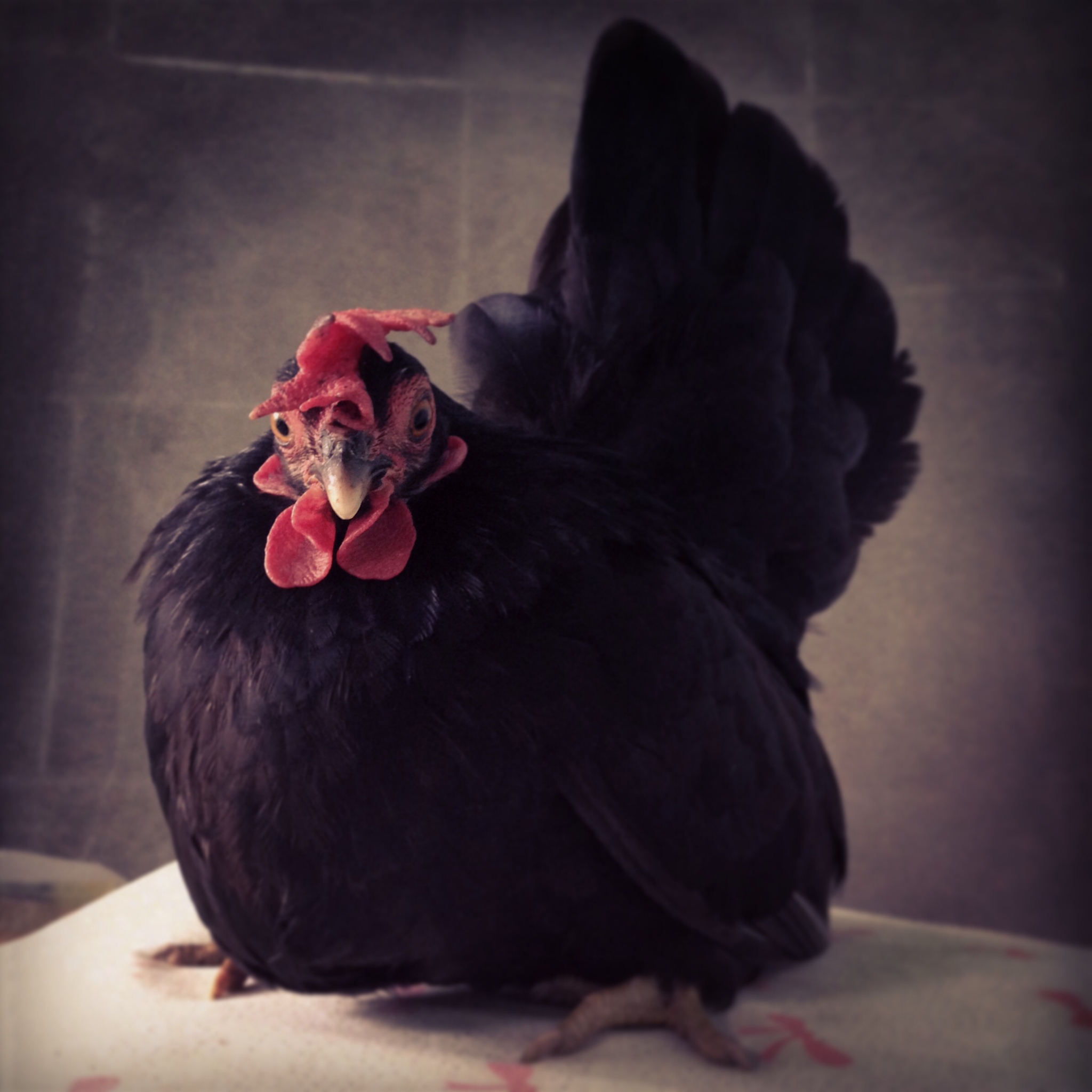 เค้าจะดุมากเวลาเห็นหมาตัวอื่นวิ่งผ่านหน้าบ้าน ตอนนี้เลยกันตรงประตูไว้ กลัวออกไปแล้วเป็นอาหารหมาที่ผ่านไปมาหน้าบ้าน เพราะหมาตัวอื่นเห็นตอนแรกจะตกใจก่อน พอได้สติก็วิ่งมาหาเลย กุ๊กจิ๊บที่พองขนอยู่เป็นต้องตีปีกใส่หมาตัวนั้นอีก