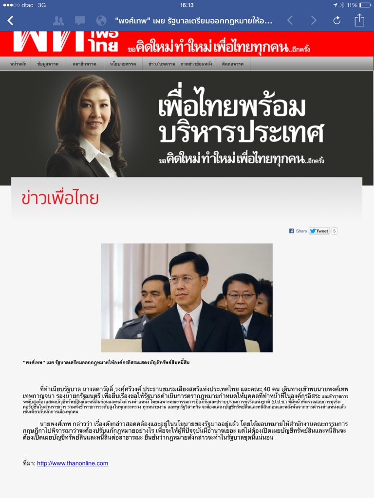 "พงศ์เทพ" เผย รัฐบาลเตรียมออกกฎหมายให้องค์กรอิสระแสดงบัญชีทรัพย์สินหนี้สิน... คนดีเอาเปรียบมานานแล้ว!!!