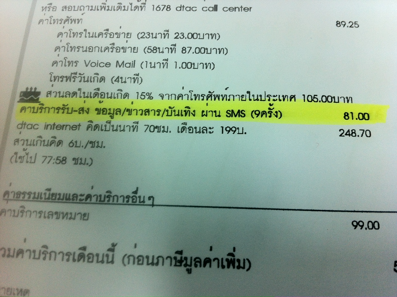 แต่พอบิลโทรศัพท์เดือนกันยายนมา ปรากฎว่าโดนค่าส่ง SMS ไป 9 ครั้ง 81 บาท............แง มาไงเนี่ย