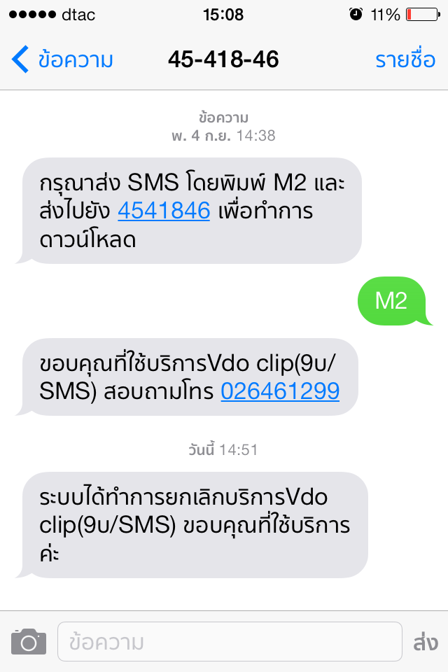 เจ็บใจมาก เลยโทรไปให้ Dtac ยกเลิกให้ และลองโทรไปตามเบอร์ในข้อความที่ 2 โทรไม่ติดคะ
