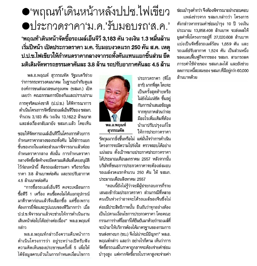 ได้ฤกษ์ปี'57จัดซื้อเมล์เอ็นจีวี ประกวดราคา'ม.ค.'รับมอบรถ'ส.ค.'