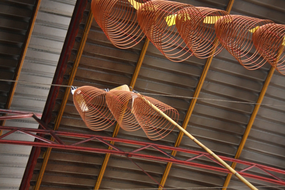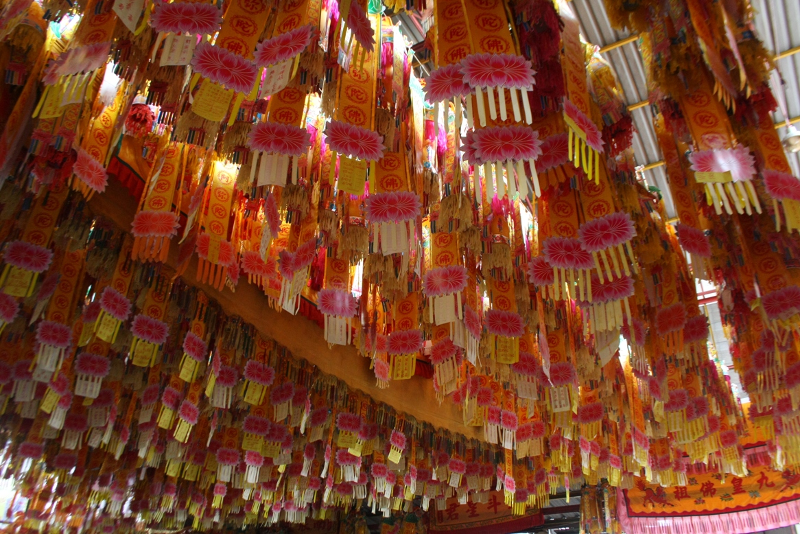 ได้ไปเยือนโรงเจแถวตลาดน้อยนะครับ บริเวณด้านหน้าของศาลเจ้ามีการแขวนโคม และอะไรก็ไม่ทราบชื่ออีก 2 อย่างตามรูปนะครับ รู้สึกว่าอีกอันจะเป็นธูปมั้ง แต่อีกอันไม่ทราบว่าเรียกว่าอย่างไร ของแต่ละชิ้นที่นำไปแขวนไว้นั้น มีชื่อเรียกว่าอย่างไรนะครับ และมีประวัติความเป็นมาอย่างไร และทำไปเพื่อจุดประสงค์อะไรนะครับ