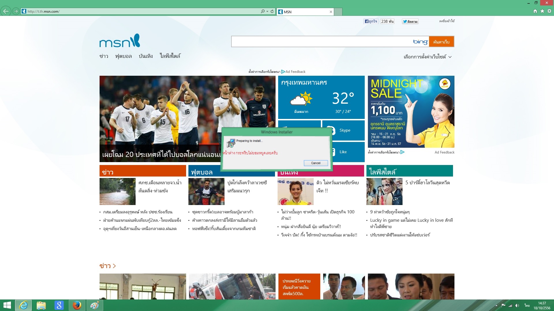 หลังจากผม up windows 8 เป็น 8.1 (64bit) เสร็จแล้ว จะใช้ IE บน Desktop มันขึ้น windows installer กระพริบไม่หยุดเลยครับ