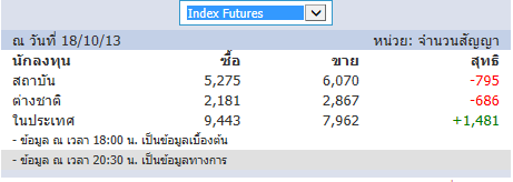 18/10/56 ต่างชาติ Short index future 686 สัญญา