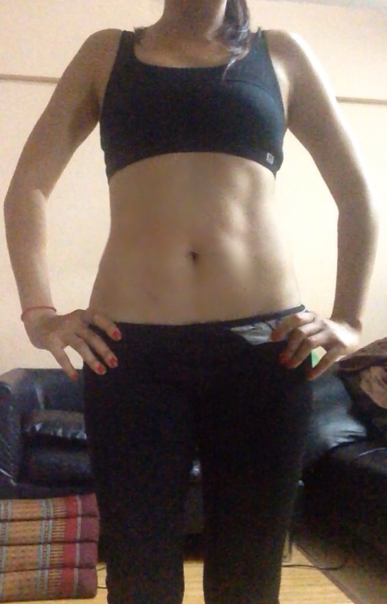 คือ พอจะเห็นเป็นลางๆแต่จับดู รู้สึกว่าชั้นไขมันรอบเอวยังหนาอยู่น่ะค่ะ