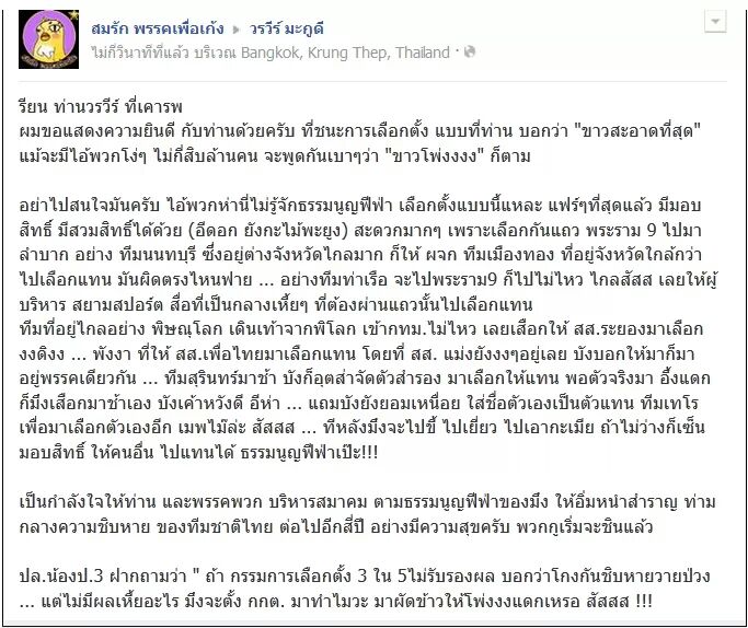 เมื้อกี้มีใครได้ดูรายการครอบครัวลูกหนังบ้างครับ ที่มีปิยพงศ์กับลุกเป็นพิธีกร และวันนี้ได้เชิญปู้เป้ พิธีกรสยามกีฬามา และยังฟันธงอีกว่าพล.อ.สมยศ จะชนะการเลือกตั้งครั้งนี้ และไม่แค่นั้นน่ะครับบอกว่าจะชน