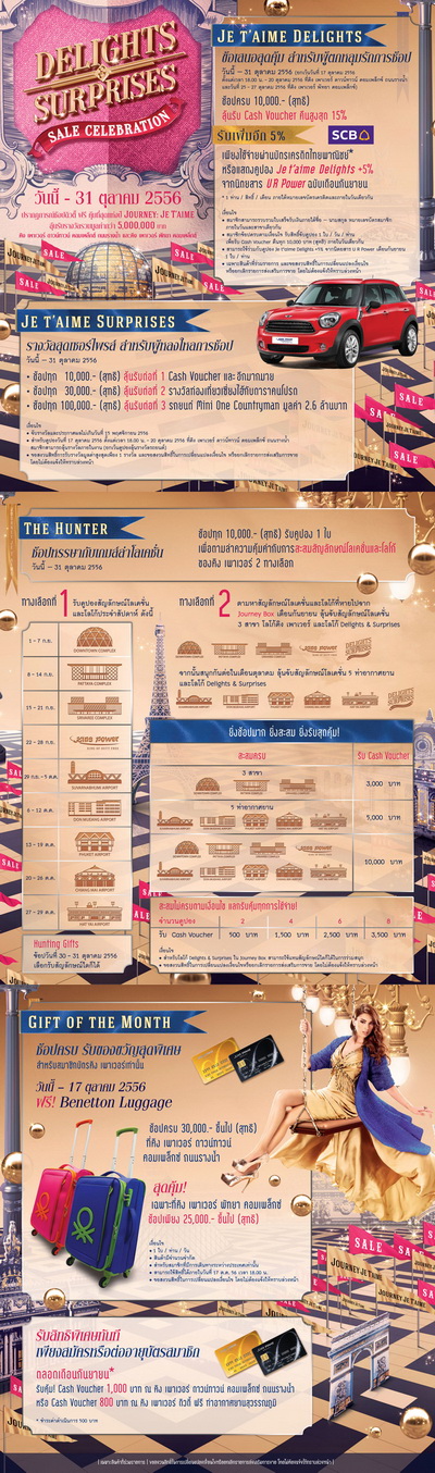 งานนี้เอาใจขาชอปทุกเพศทุกวัย ลดสินค้า 30% เริ่มแล้วถึงวันที่ 31 ตุลาคม 2556 นี้ค่ะ แอบเห็นสาวๆ คล้อง longchamp ไปหน้าเค้าท์เตอร์กันเป็นพวงมาลัยเลย ;P