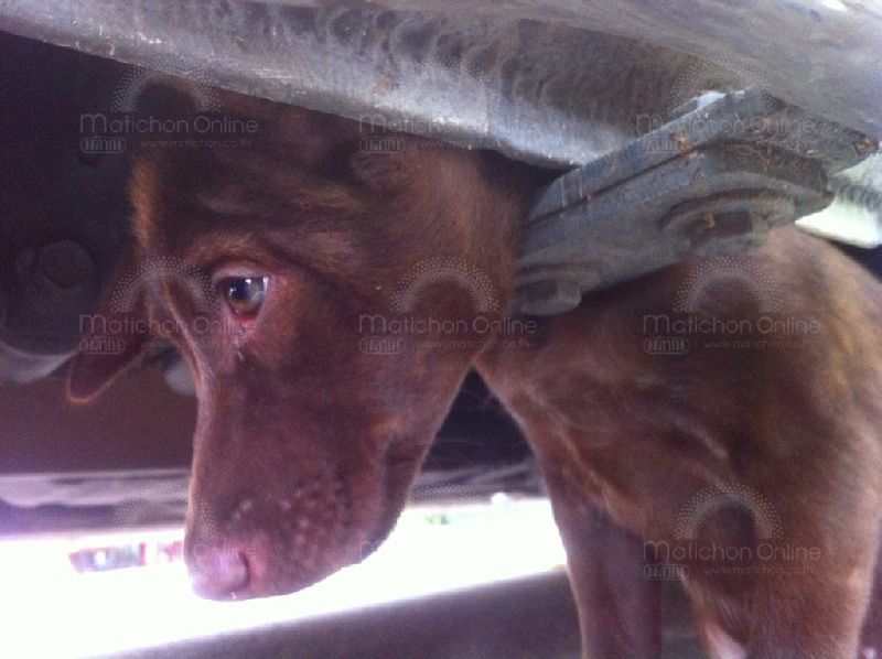 หลังจากเจ้าหน้าที่กู้ภัยข่าวภาพเดินทางมาถึง ได้ก้มลงไปดูพบลูกสุนัขสีน้ำตาลเพศเมียตัวหนึ่ง สภาพหัวเข้าไปขัดติดอยู่กับช่องเหล็ก ซึ่งเป็นช่องว่างเล็กๆ โดยสุนัขตัวดังกล่าวพยายามดิ้นรนเพื่อให้หลุดออกมา แต่เนื่องด้วยจากหัวได้หลุดเข้าไปในช่อง ทำให้หลุดออกมาได้ยาก ทางเจ้าหน้าที่กู้ภัยจึงได้เร่งที่จะทำการช่วยเหลือ เพราะสภาพลูกสุนัขเริ่มมีอาการอ่อนเพลีย บริเวณช่องบีบที่บริเวณลำคอเอาไว้ ทำให้หายใจไม่สะดวก เจ้าหน้าที่กู้ภัยจึงได้ใช้เครื่องมือประแจคลายน็อตออก ก่อนจะสามารถช่วยเหลือสุนัขออกมาได้อย่างปลอดภัย พร้อมกับนำไปปล่อยให้อยู่กับสุนัขตัวอื่น ซึ่งเป็นสุนัขจรจัดภายในบริเวณดังกล่าว