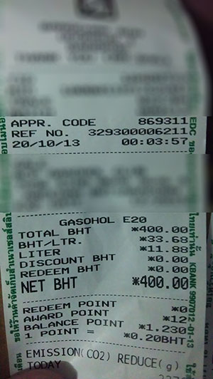 เราใช้บัตร gasohol club สะสมแต้ม จึงต้องรูดเพิ่มให้เราอีก 400 บาท