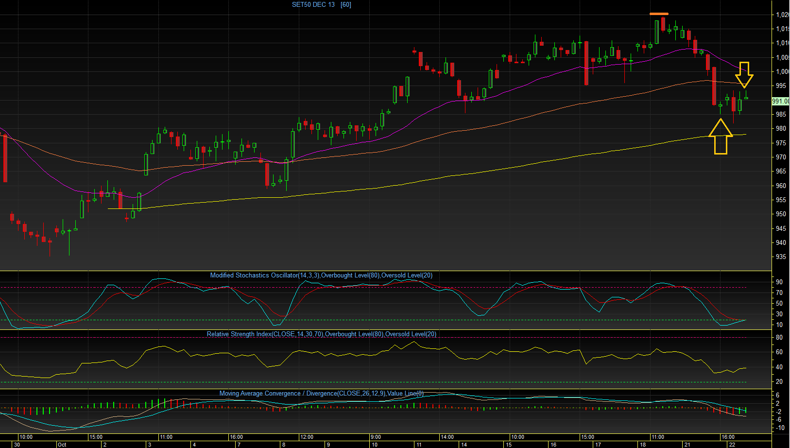 Fibo 61.8% 1006 ยิ่งทำให้เกิด Panic Sell ออกมาค่อนข้างแรง ลงมาปิดที่ระดับ 988 จุด