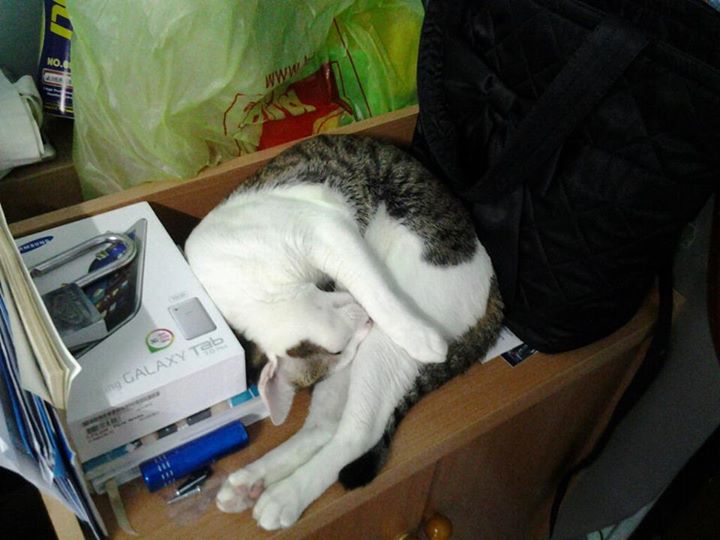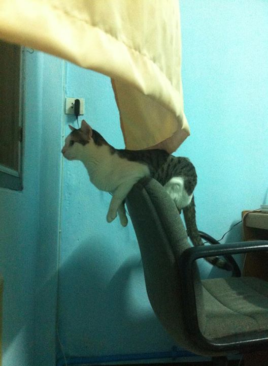 เรามีที่นอนให้เค้านอนนะ แต่ก้สรรหาที่จะนอนแบบนี้
