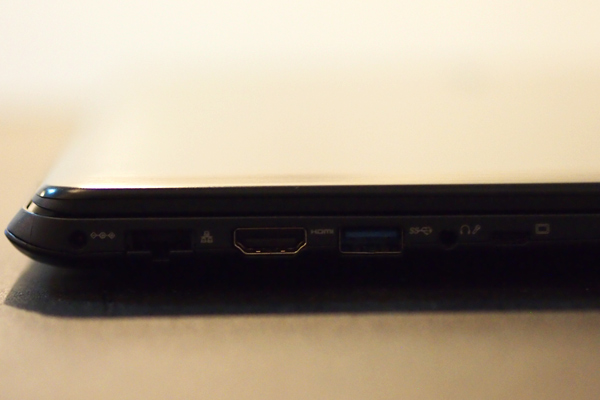 เริ่มจากภายนอก Samsung ATIV Book5 Ultrabook ขนาดบางเฉียบเพียง 20.8 มิลิเมตร น้ำหนักประมาณ 1.96 กิโลกรัม ใช้วัสดุค่อนข้างที่จะดีที่ Samsung เรียกว่า "Mineral Ash Black" เป็น Aluminum มันเงาสีเข้มทั้งเครื่อง ให้สัมผัสที่หรูหรา ดูดี ถ้าเทียบกับเครื่องยี่ห้ออื่นที่ใช้พลาสติก อย่างเช่น Dell เป็นต้น ดูคงทน แข็งแรงดีมาก มี Logo Samsung เงาวับอยู่ด้านบน. ด้านข้างมี port เชื่อมต่อครบทุกความต้องการ ด้านซ้ายประกอบด้วย ช่องเสียบ adapter (power jack), LAN, HDMI, USB 3.0, audio jack และ mini-VGA. ส่วนด้านขวาประกอบด้วย Card reader, USB 2.0 และ security slot.