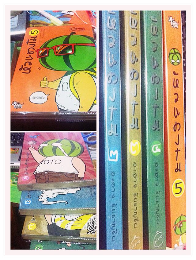 หัวแตงโมเล่ม1-5 ค่ะ รู้สึกเสียใจนิดหน่อย ที่เล่ม 5 เปลี่ยนรูปแบบปก ดูไม่เข้าชุดเลย T^T