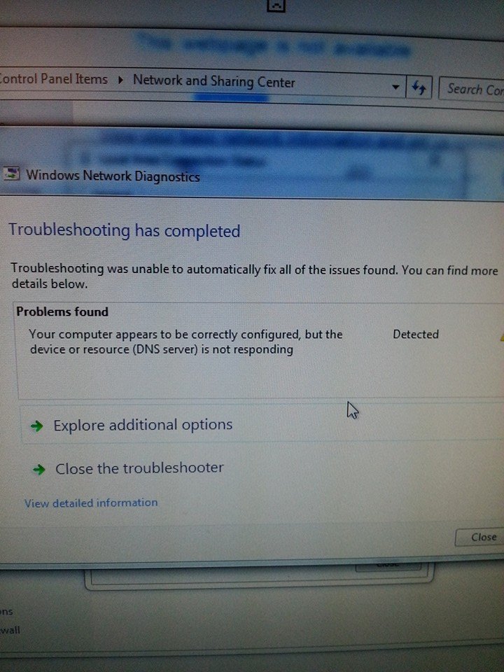 คือตอนนี้คอม PC ของตัวเองมีปัญหาคือ ต่อแลนติด แต่ไม่สามารถเข้าเว็บใดๆได้เลย ส่วนเครื่องอื่นๆในบ้านสามารถใช้เนตจากสายแลนได้ปกติค่ะ รวมถึงใช้ผ่าน Wireless ก็ปกติค่ะ ส่วนคอมของตัวเองได้ทำการ Troubleshoot ดูแล้วก็ยังไม่สามารถเล่นได้ และมีประโยชน์เกี่ยวกับ DNS SERVER โชว์ขึ้นมาดังรูปค่ะ