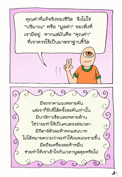 ใช้ "ความพอเพียง" หยุดความโลภของตัวเองให้ได้ ไม่เช่นนั้นเราก็คงจะมี "ความอยาก" และ "ความต้องการ" ต่อไปเรื่อยๆ อย่างไม่มีที่สิ้นสุด ดังเช่นข้อคิดดีๆ ของหมื่นตาที่ว่า "โลกทั้งใบไม่เพียงพอกับคนโลภเพียงคนเดียว"