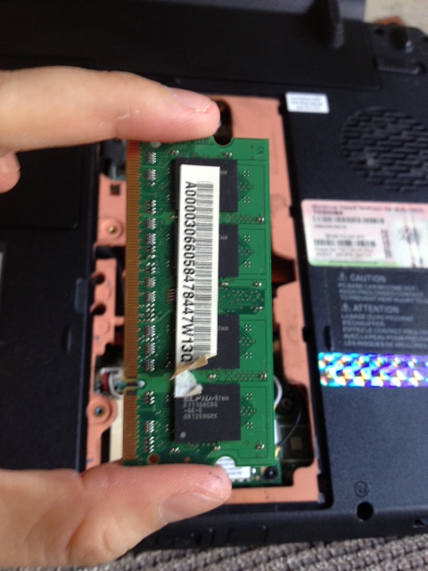 เนื่องจากโน๊ตบุ๊คของ จขกท ช้าเป็นเต่ามาก จนใช้แทบไม่ได้ จขกท เลยปรึกษาผู้รู้ ท่านว่า ให้เช็คดูว่า RAM เต็มรึเปล่า จขกท ก็ดูไปถึง Properties และพบว่าคอมฯ มี RAM แค่ 1 อัน ขนาด 1 GB เลยไขฝาหลังเครื่องเปิดดู