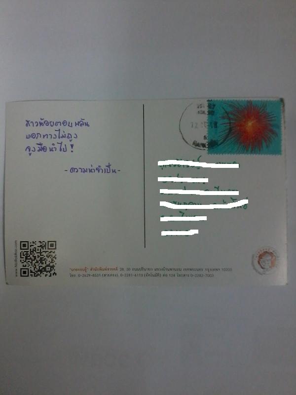 และคุณหอยทาก ได้ตอบกลับแคนโต้ของพี่พุ่มที่ไปรษณีบัตรด้วย ว่า