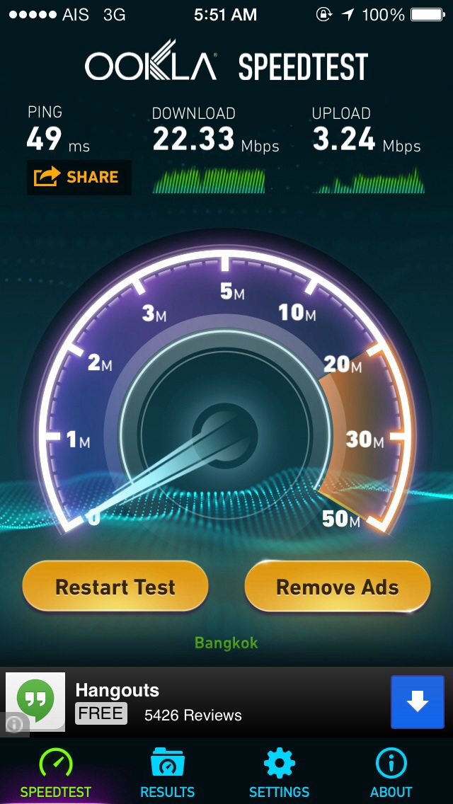 3G Speedtest TRUE-H vs AIS3G on iPhone5S ยามค่ำๆ