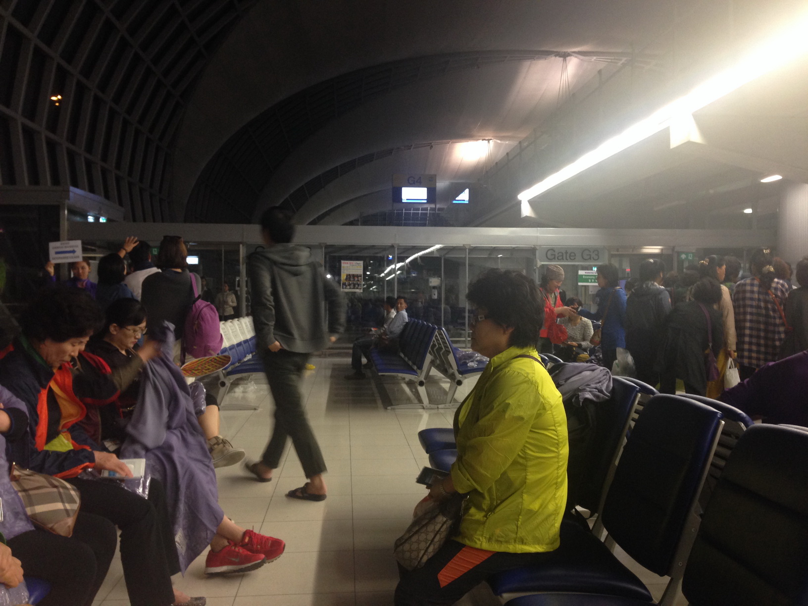 ทางสายการบินให้วอชเชอร์ทานอาหารแก้เซ็ง 300 บาทค่ะ เลยจัดผัดไทแก้เซ็งไปจานนนึง ราคาโหดมากเลยยยย ... พอทานข้าวมื้อดึกเสร็จ ก็ไปนอนที่เกทพักใหญ่ๆค่ะ มีอาจุมม่านอนเกลื่อนเกทเลย