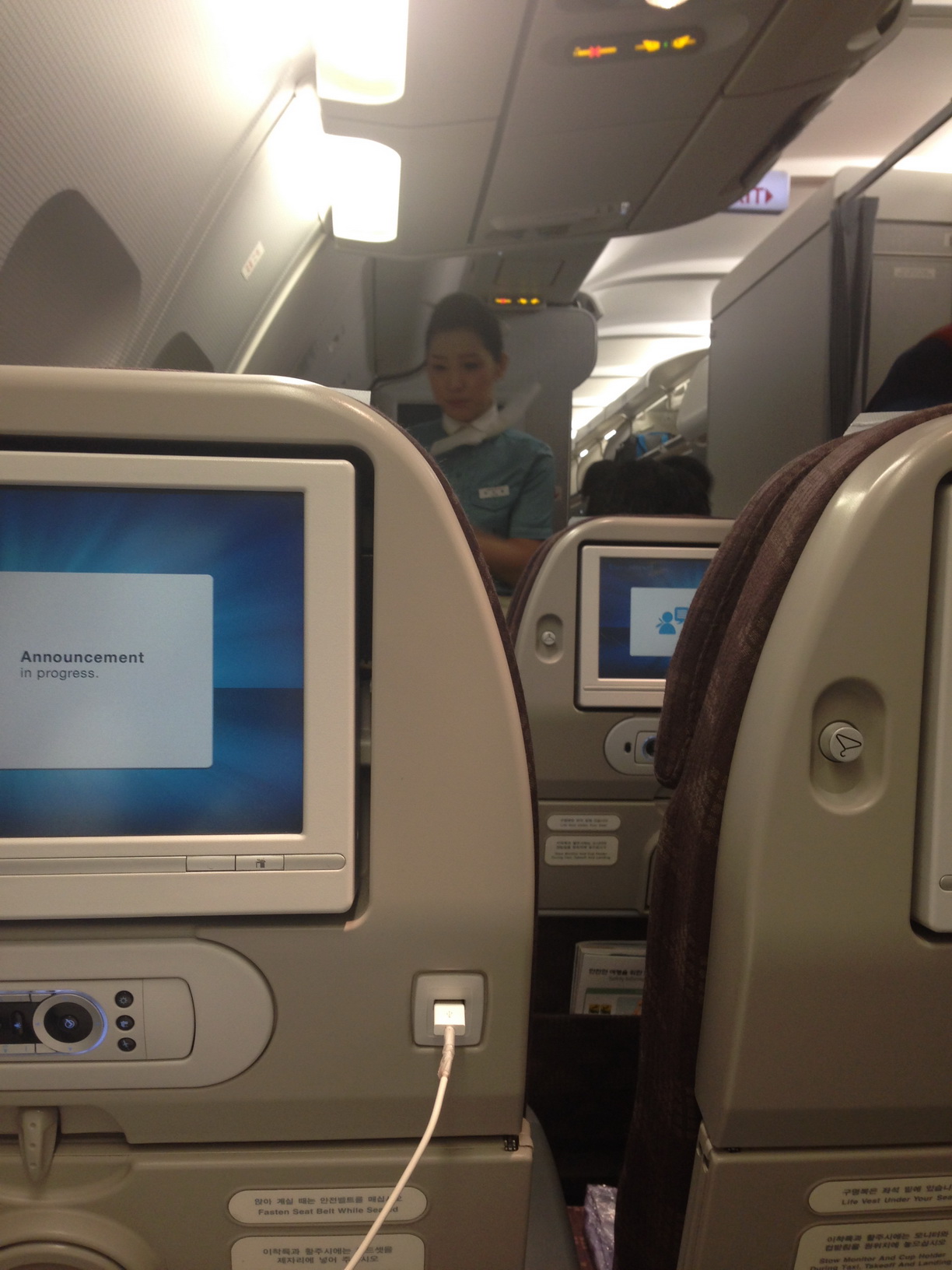 เดินทางด้วยสายการบิน Korean Air ค่ะ เครื่องเค้านิ่มนั่งสบายๆมากเลยค่ะ แต่ว่าเซ็งนิดหน่อย เครื่องดีเลย์ถึง 3 ชั่วโมง !!!
