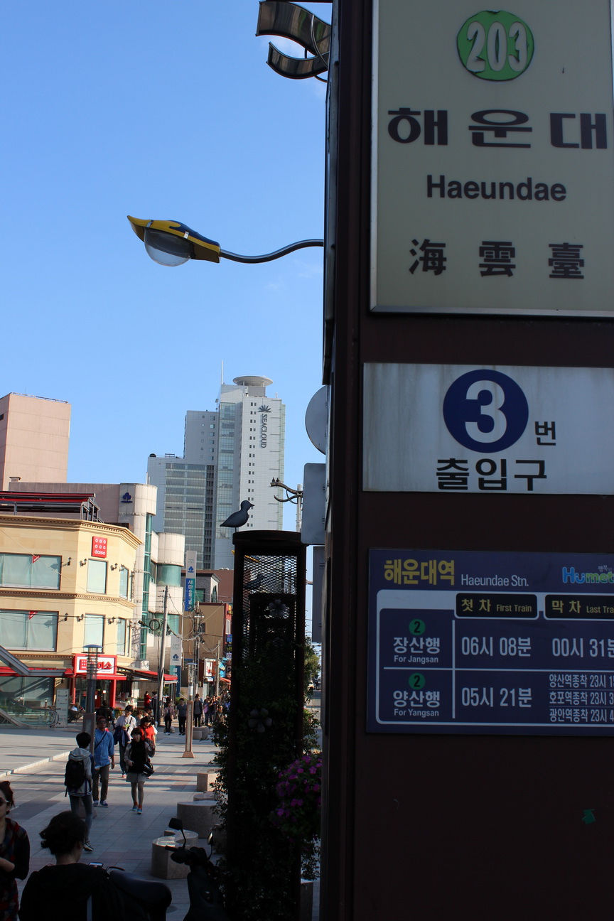 ออกเดินทางจากเกสเฮ้าส์ไปหาดแฮอึนแดโดยรถไฟฟ้าค่ะ ใช้เวลาไม่นานก็ถึงหาด