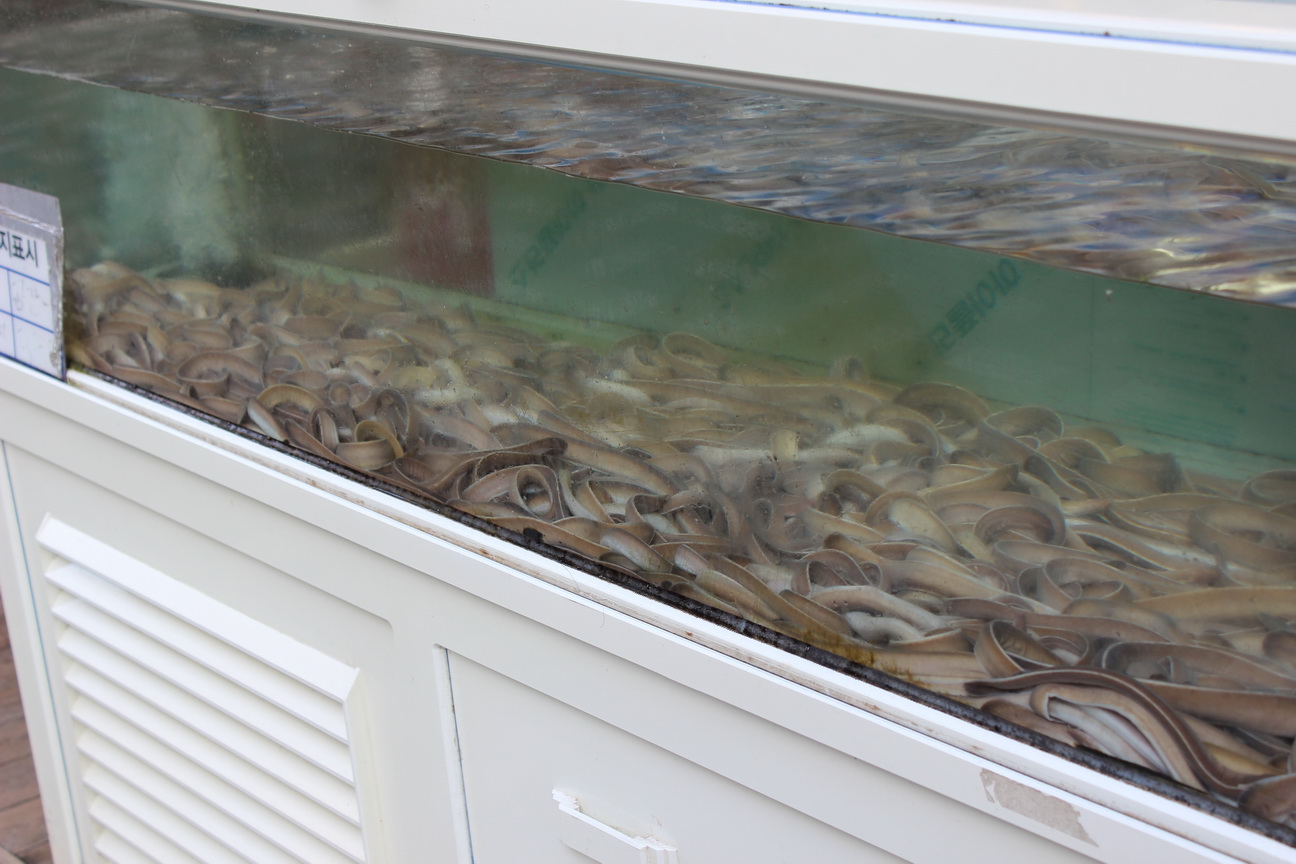 ระหว่างทางกลับไปซับเวย์จะมีตลาดสดด้วยค่ะ เดินเข้าไปก็จะมีสัตว์ทะเลหน้าตาประหลาดๆเต็มตู้ไปหมด .... ม่ายค่อยน่ากินซักเท่าไหร่