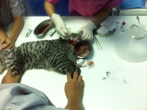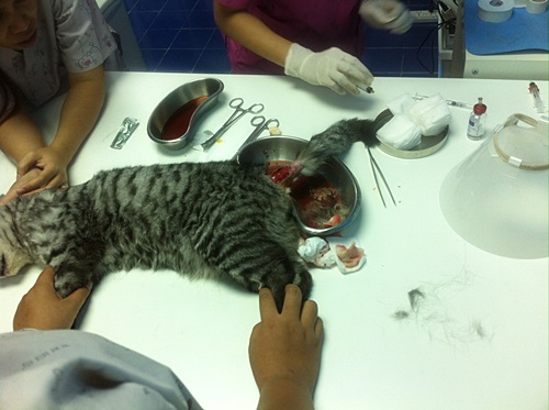 วินาทีนั้นตกใจมากๆ รีบพาไปพบคุณหมออีกครั้ง คุณหมอจับหางจะวัดไข้ เขาร้องและขู่เสียงดังมาก คุณหมอต้องช่วยกันจับไว้สามคนค่ะ ปรากฏว่าไข้สูง คุณหมอโกนขนที่หางเขาร้องทรมานมากจนเราทนดูไม่ไหวค่ะ คุณหมอบอกว่าต้องผ่าเพราะข้างในมีหนอง ต้องวางยาซึมให้เราเซ็นต์เอกสารอนุญาต