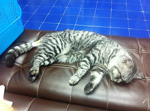ผ่านมาหนึ่งอาทิตย์คุณหมอนัดมาดูแผลอีกครั้ง แผลแห้งและตกสะเก็ดแล้ว มองภายนอกปกติทุกอย่าง คุณหมอบอกว่าแผลหายแล้ว ซึ่งมันก็น่าจะเป็นอย่างนั้น เพราะกินได้ เล่นได้ปกติ แต่พักหลังๆเขาไม่ชอบให้จับที่หาง ซึ่งคุณแม่ก็เข้าใจว่าเขายังกลัวอยู่และคงจะเข็ด