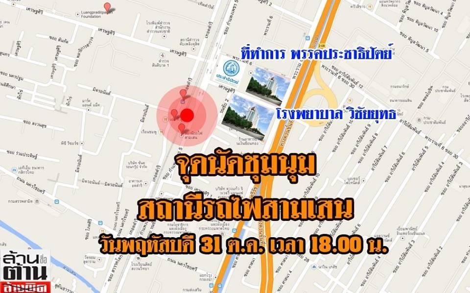โดยนัดรวมพล หน้ามูลนิธิช่วยคนตาบอดแห่งประเทศไทย ฝั่งตรงข้ามอาคารเทพรัตน์ โรงพยาบาลรามาธิบดี สี่แยกตึกชัย ถนนพระรามหก จากนั้นจะออกเดินรณรงค์ในเวลา 17.30 น. ไปยังเวทีอุรุพงษ์ ก่อนที่จะขยับต่อเนื่องไปยังสถานีรถไฟสามเสน