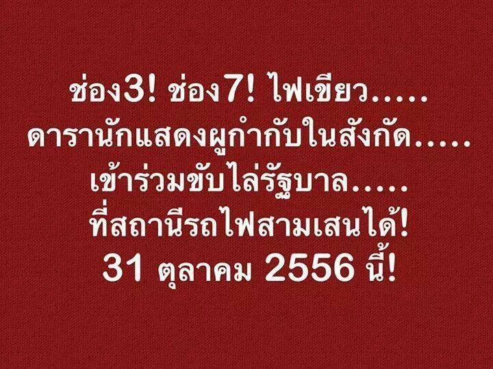 วันที่ 31 ตุลาคม พ.ศ. 2556 เวลา 17.00 น. จะเข้าร่วมขบวนกับกลุ่มแพทย์ไทยหัวใจรักชาติ แสดงจุดยืนต่อต้าน พ.ร.บ.นิรโทษกรรม ฉบับนี้ด้วยการใส่ชุดขาวดำ โดยนัดรวมพล หน้ามูลนิธิช่วยคนตาบอดแห่งประเทศไทย ฝั่งตรงข้ามอาคารเทพรัตน์ โรงพยาบาลรามาธิบดี สี่แยกตึกชัย ถนนพระรามหก จากนั้นจะออกเดินรณรงค์ในเวลา 17.30 น. ไปยังเวทีอุรุพงษ์ ก่อนที่จะขยับต่อเนื่องไปยังสถานีรถไฟสามเสน