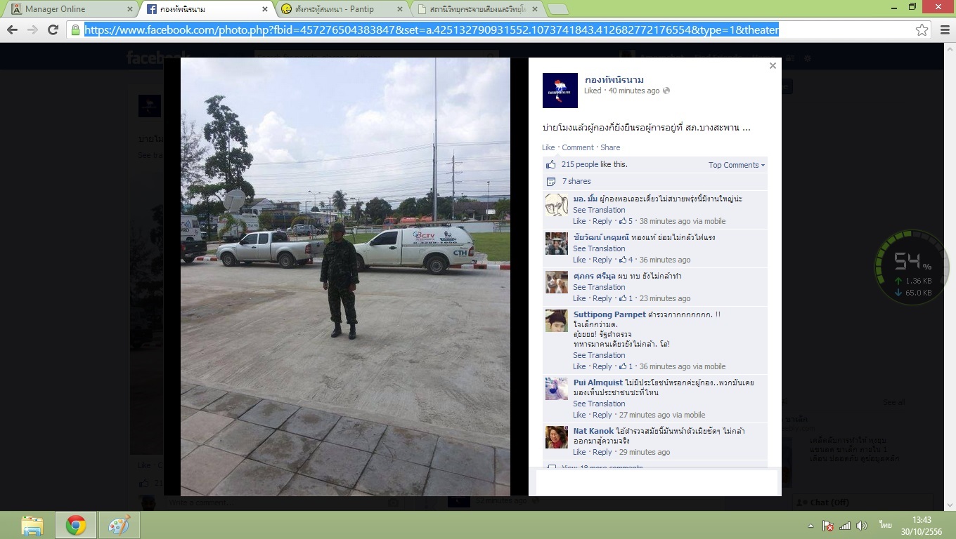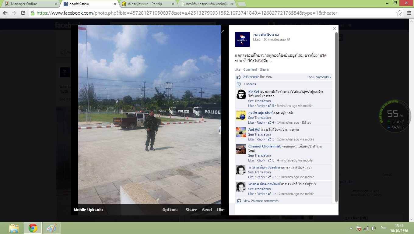เมื่อสักครู่โทร.หา พ.ต.ท สมบูรณ์ สอบถามเรื่องราวว่าเป็นอย่างไร ท่านบอกว่า ผู้กองผูเค็มยืนหน้าโรงพัก ทำท่ายืนตามระเบียบพัก เชิญให้เข้าไปรับทราบข้อกล่าวหา แต่แกไม่เข้า จนกระทั่งนาทีนี้