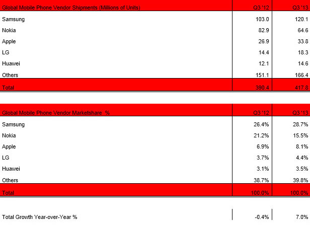 IDC เผยสถิติยอดขายมือถือและสมาร์ทโฟนประจำไตรมาสที่สามของปี 2013