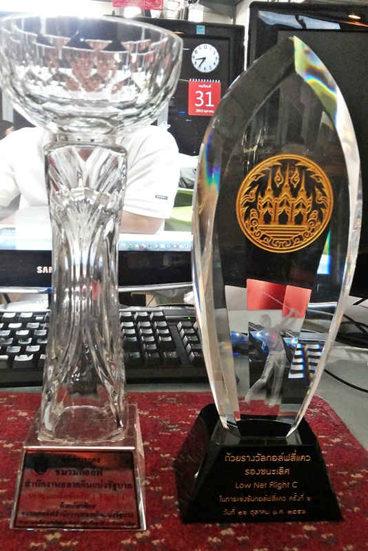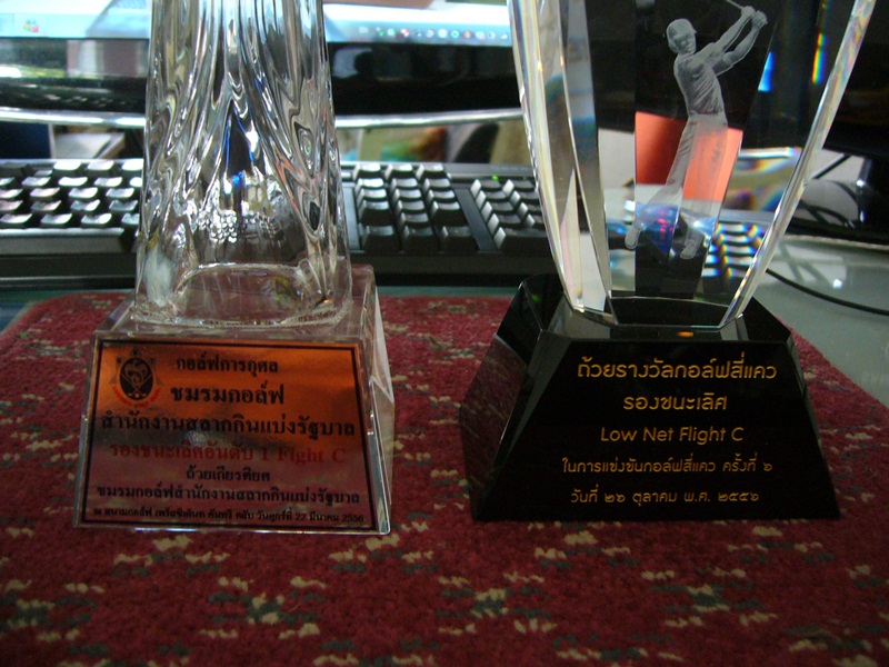 เมื่อวานนี้ไปแข่งกอล์ฟของ ผู้ว่าราชการจังหวัด.มาครับ ด้วยเหตุที่ต้องเลื่อนจาก วันที่ 26 เพราะสภาพอากาศไม่อำนวย ผมเองไม่ค่อยได้ซ้อมด้วย แต่สิ่งที่ได้มาอย่างที่ไม่ได้คาดหวังมาก่อน คือ ถ้วยรางวัล ด้วยคิดอยู่แล้วว่าเล่นได้ไม่ค่อยดีใน 9 หลุมแรกเพราะออกเกินดับเบิ้ลสองหลุม แต่มาดีเอา 9 หลุมหลังแบบไม่น่าเชื่อ..