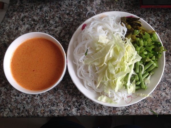 ขนมจีนน้ำยากะทิ (เส้นขนมจีนใช้เส้นขนมจีนอบแห้งของเวียดนามค่ะ)
