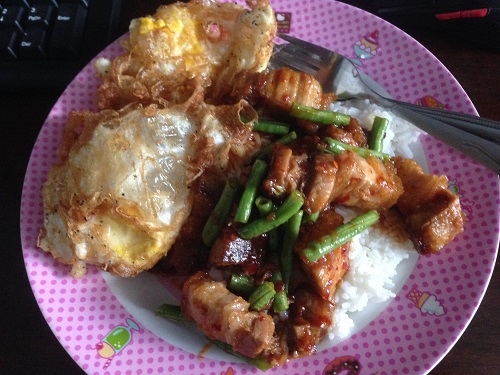 ผัดพริกเผาหมูกรอบไข่ดาวราดข้าว