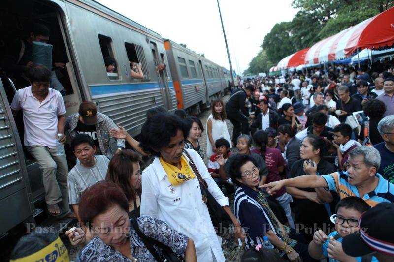 สถานีรถไฟสามเสนแตกแล้ว คนมากมายมหาศาลมาจากทุกทิศทาง ร่วมใจกันมาชุมนุมตามระบอบประชาธิปไตย ต่อต้าน กม.ล้างผิดให้คนคดโกงชาติ จนไม่มีที่จะยืนแล้วจ้า ว่าจะนั่งรถไฟจากสุรินทร์ไปลงสามเสน หวังว่าคงไม่โดนวิชามาร...สกัดนะจ๊ะ 55555555555555555555555555555