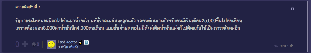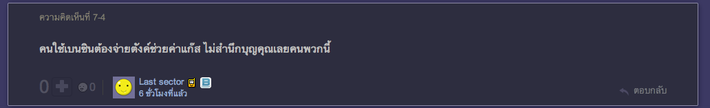 จำไว้ว่า คนใช้รถติดแก็สบางคน ยังรวยกว่าคนใช้น้ำมันแล้วมาบ่นนู่นนี่นั่นมากมาย เศษเงินที่โดนเก็บเข้ากองทุนนี่ถ้าคิดเล็กคิดน้อยขนาดมาทวงบุญคุณ พวกนี้ไม่ได้รวยจริงหรอกครับ ก็แค่คนมีเครดิต เอารถไฟแนนท์มาขับโก้หรู พอสิ้นเดือนก็เหนียมๆ กลัวไม่มีตังค์ไว้เติมน้ำมัน นั่งรถเมล์เสียมาด