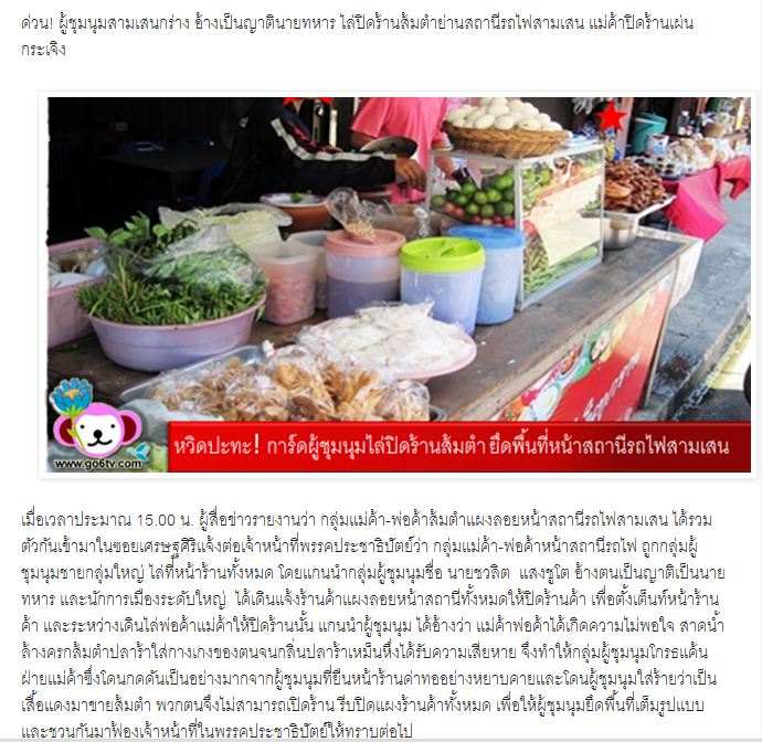 หวิดปะทะ! ผู้ชุมนุมสุดกร่าง ไล่ปิดร้านส้มตำหน้าสถานีรถไฟสามเสนยึดพื้นที่ถาวร........ซ่าจริงๆ