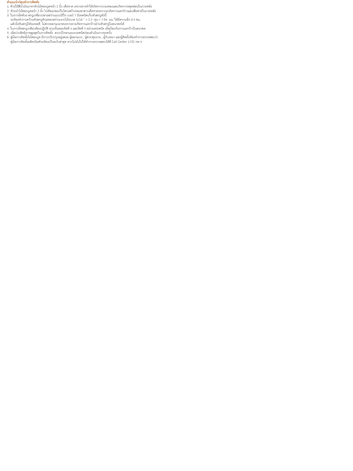 พอดีอ่านคู่มือ ติดไม้บังตา เค้าบอกว่าต้อง คว้านสกรูก่อน จากนั้นค่อยใช้สกูรปล่ายส่วนเจาะเพื่อติดตั้งอีกที