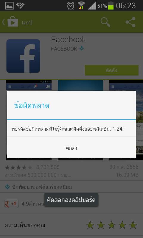 ลงแอป Facebookไม่ได้