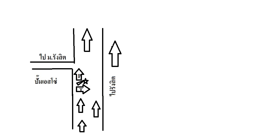ดูตามรูปอธิบายเหตุการณ์นะครับ เหตุเกิดช่วงสี่โมง บริเวณทางเข้ามหาวิทยาลัยรังสิต พหลโยธิน ขาออก บริเวณปั๊มเอสโซ่