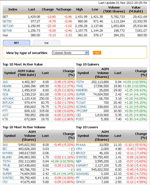 ### Graph Stock : Top 10 . Weekly 01.11.2013 ###