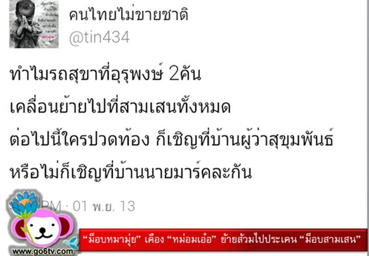 เป็นสลิ่มเมืองไทยสุขใจยิ่ง ไม่อยู่นิ่งนอนใจนั่งไขว่ห้าง มีม็อบรอให้ไปร่วมเกลื่อนกลาดทาง ใครอยู่ข้างชานชาลาสถานี... ก็ไปม็อบสามเสนเพื่อนเยอะหน่อย อยู่ไม่ห่างม็อบหยองหยอยสามเสนนี้ คืออีกม็อบชอบหมามุ่ยค