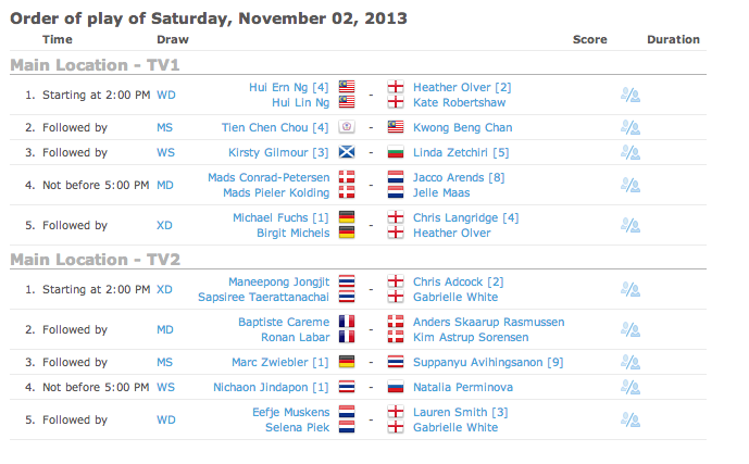 แบดมินตัน Bitburger ตามตารางนี้ นักเเบตไทยเริ่มเเข่งเวลาเมืองไทยกี่โมงครับ