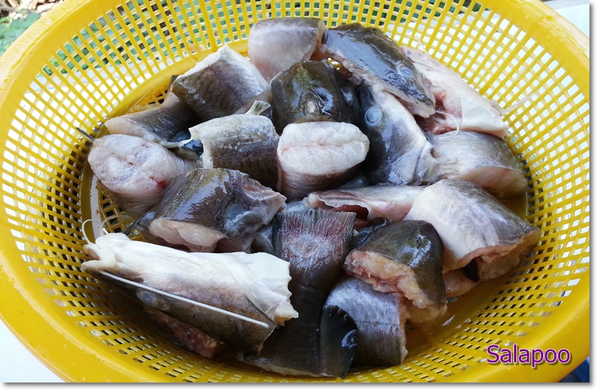 ปลากด จัดการล้างเมือก ล้างคาวหั่นท่อนเตรียมไว้ 3 ตัว ได้ไม่น้อยเลย