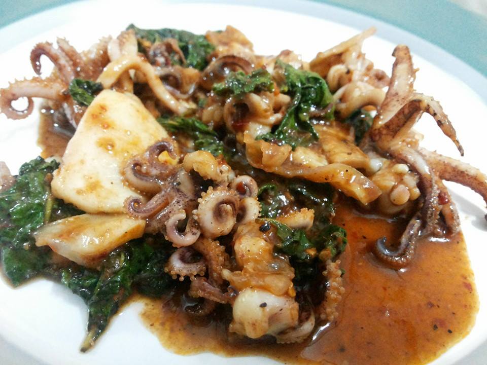 Patjang กับเมนู เห็ดหอมผัดซีอิ้ว และ ปลาหมึกผักน้ำพริกตาแดง