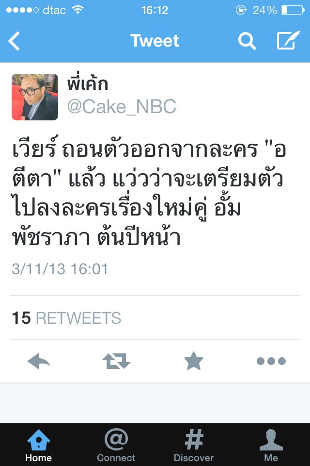เวียร์ ถอนตัวจากละคร อคีตา เตรียมลงละคร กับ ซุปตาร์ตัวแม่ อั้ม พัชราภา ในปี 2557