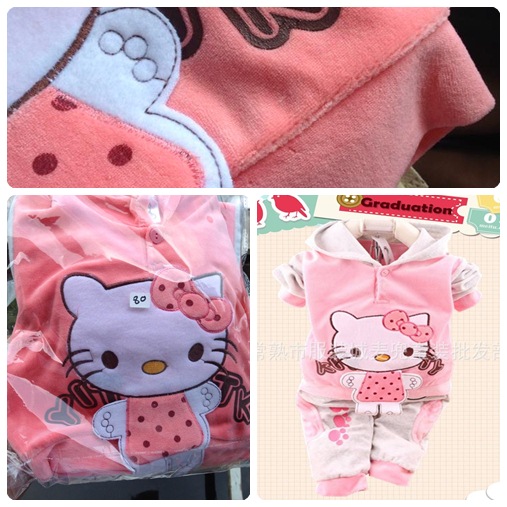 ชุดกันหนาวคิตตี้มีฮูด แต่งน้องคิตตี้ที่หน้าอก มาคู่กันกับกางเกง